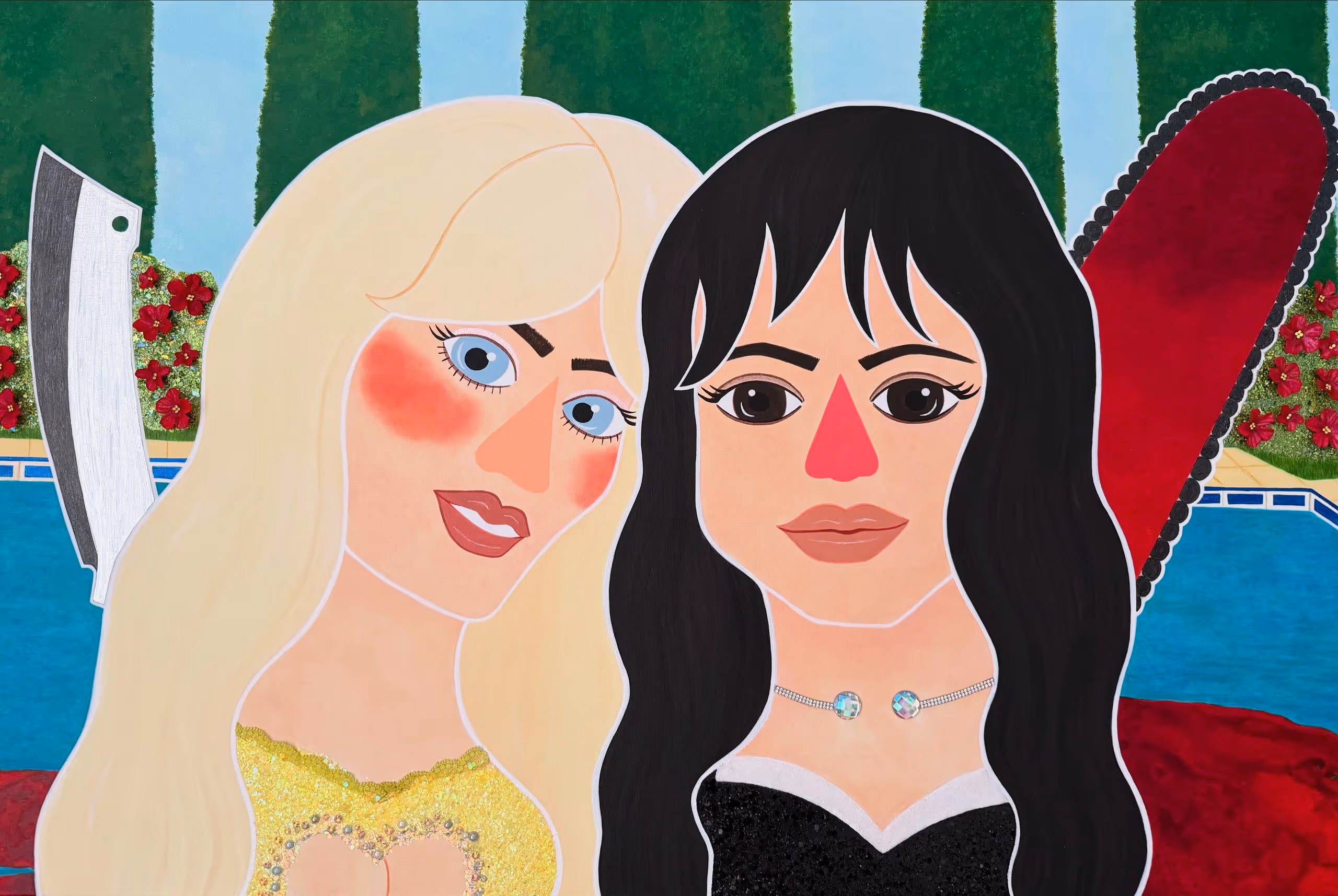 This painting is inspired by the AWESOME music video “Taste” by Sabrina Carpenter and Jenna Ortega. And that video is inspired by the AWESOME movie “Death Becomes Her.”